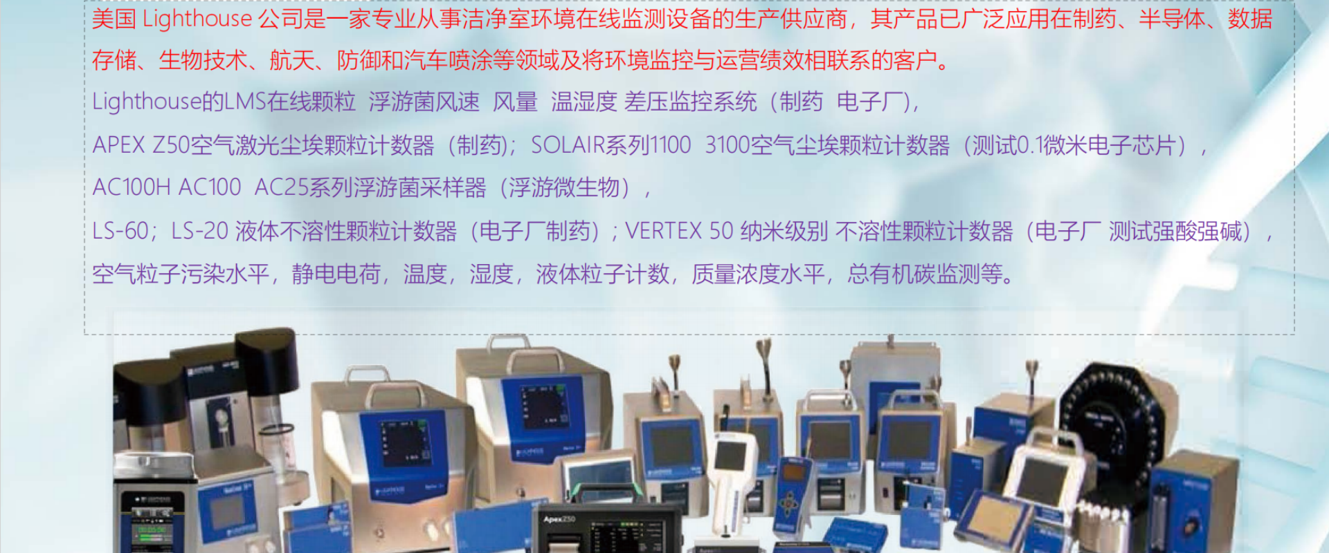 ?美國 LIGTHTOUSE 系列:作為中國區(qū)域總代理兼全國售后和校準(zhǔn)中心,我們?nèi)μ峁┰诰€粒子、浮游菌、風(fēng)速、風(fēng)量、差壓...
